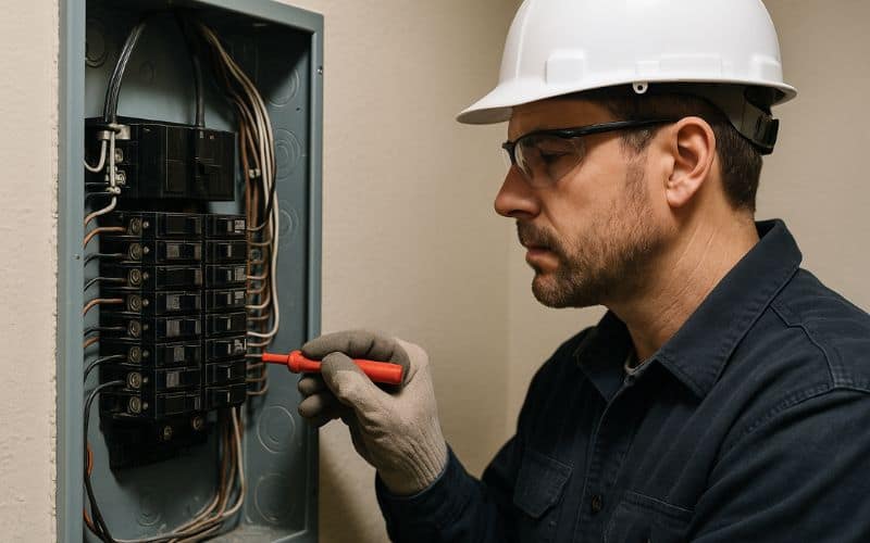 You should also call if you hear popping sounds at a panel, experience repeated GFCI or AFCI trips, or see lights flickering even after replacing bulbs. These often point to deeper issues like voltage drop, shared neutral problems, or deteriorated conductors hidden in junction boxes or attics.